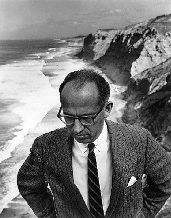 Photographer Philippe Halsman took this picture of Salk as he inspected the site in San Diego, California, for the Salk Institute for Biological Studies.